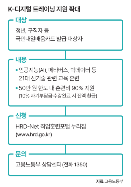 정부는 대학생, 취준생, 재직자까지 국민 누구나 디지털 직무역량을 습득할 수 있도록 'K-디지털 트레이닝' 제도를 시행하고 있습니다.